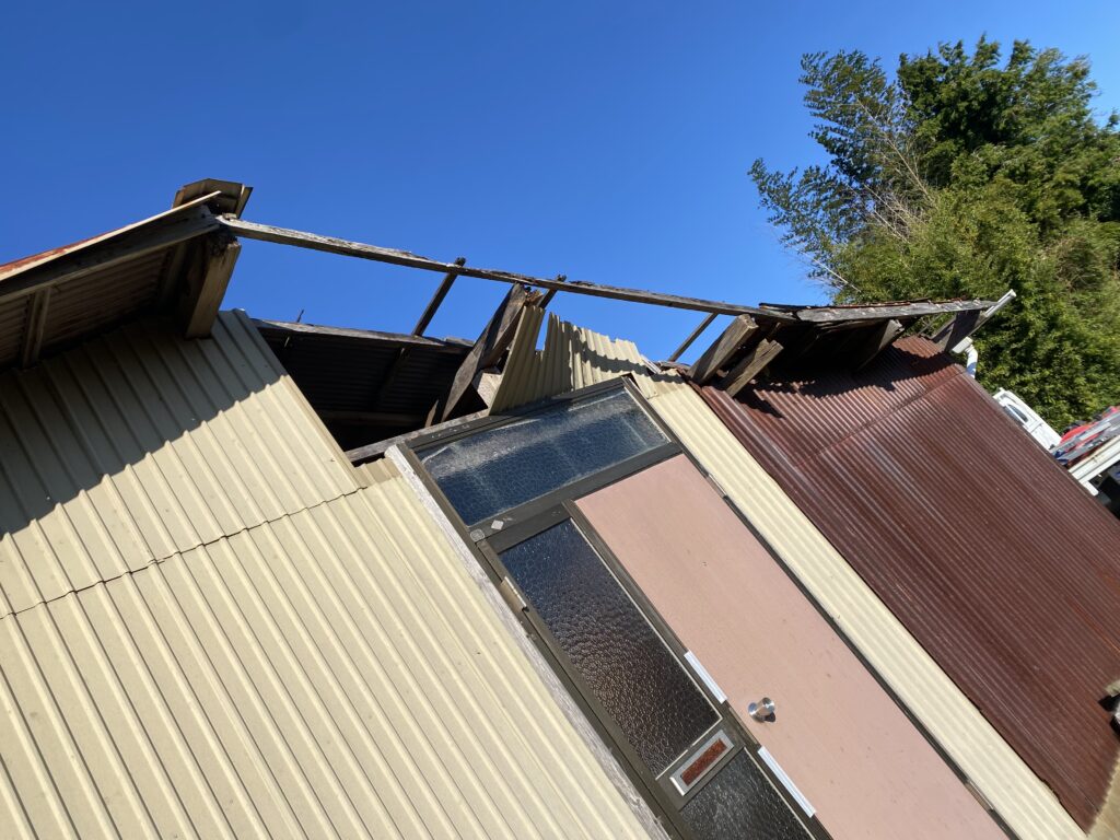 今回は同業者であるI様の倉庫の屋根の一部がだいぶやられているので雨が入らないように直してほしいとの依頼です