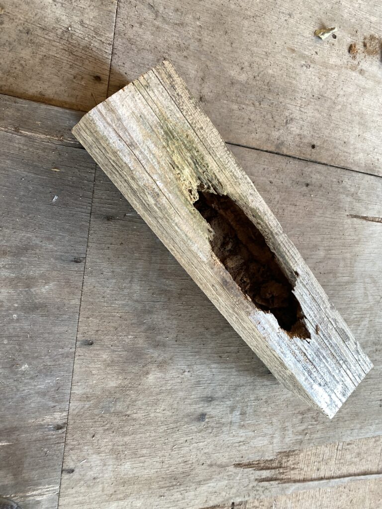 先端部分が触ると崩れるくらいになっているので、強度があるところまで切り捨て、新しい部材で延長します