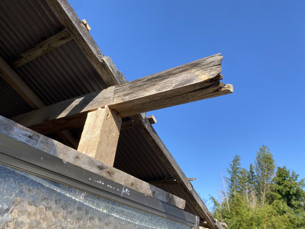 確認したところ束や梁、垂木やドウブチと言った重要な部材がかなり腐食し、崩れていました