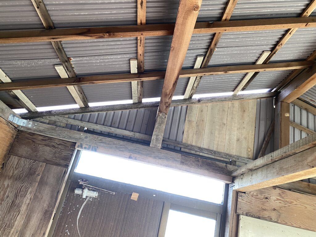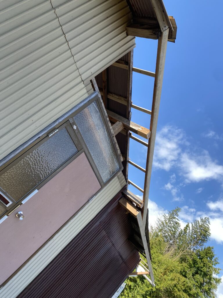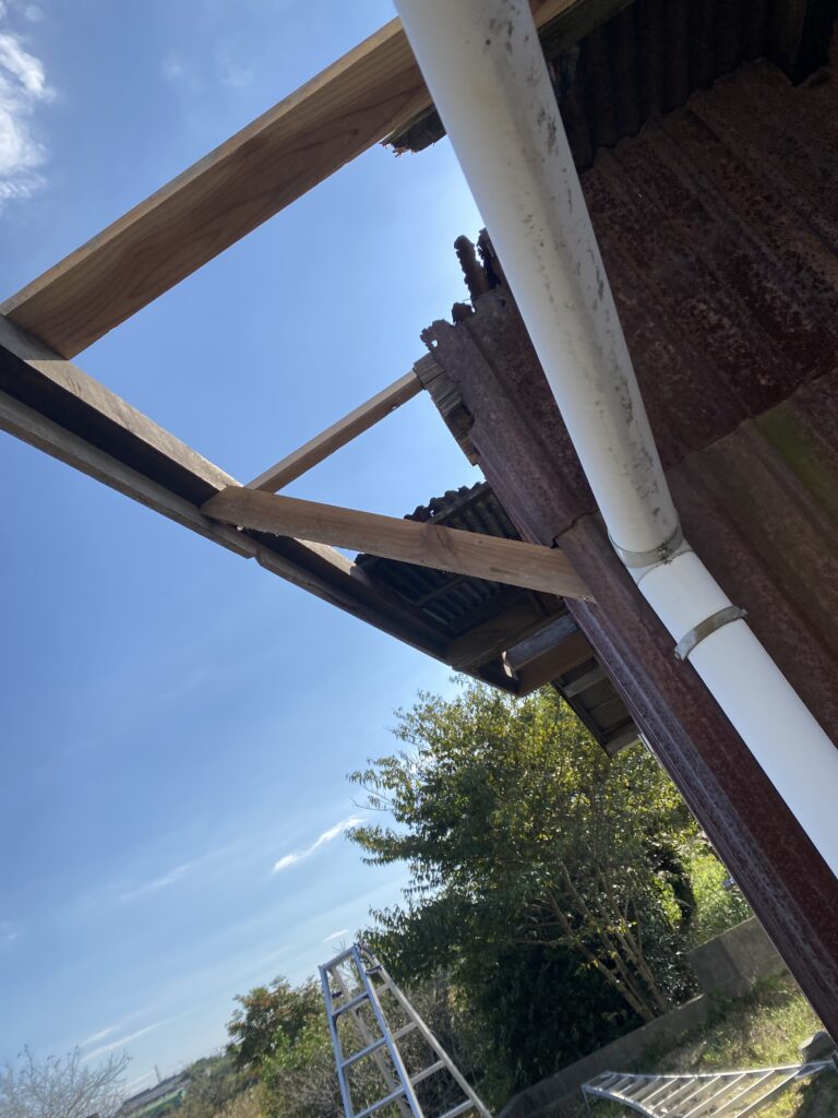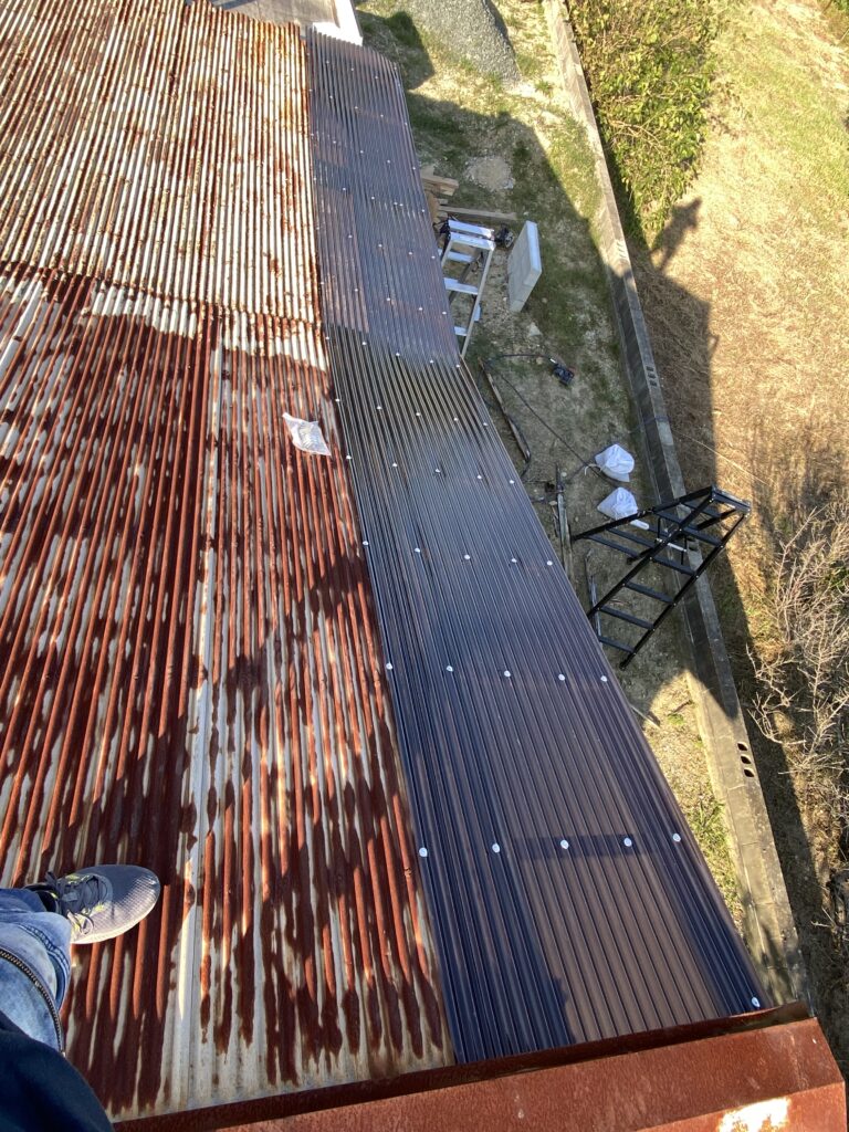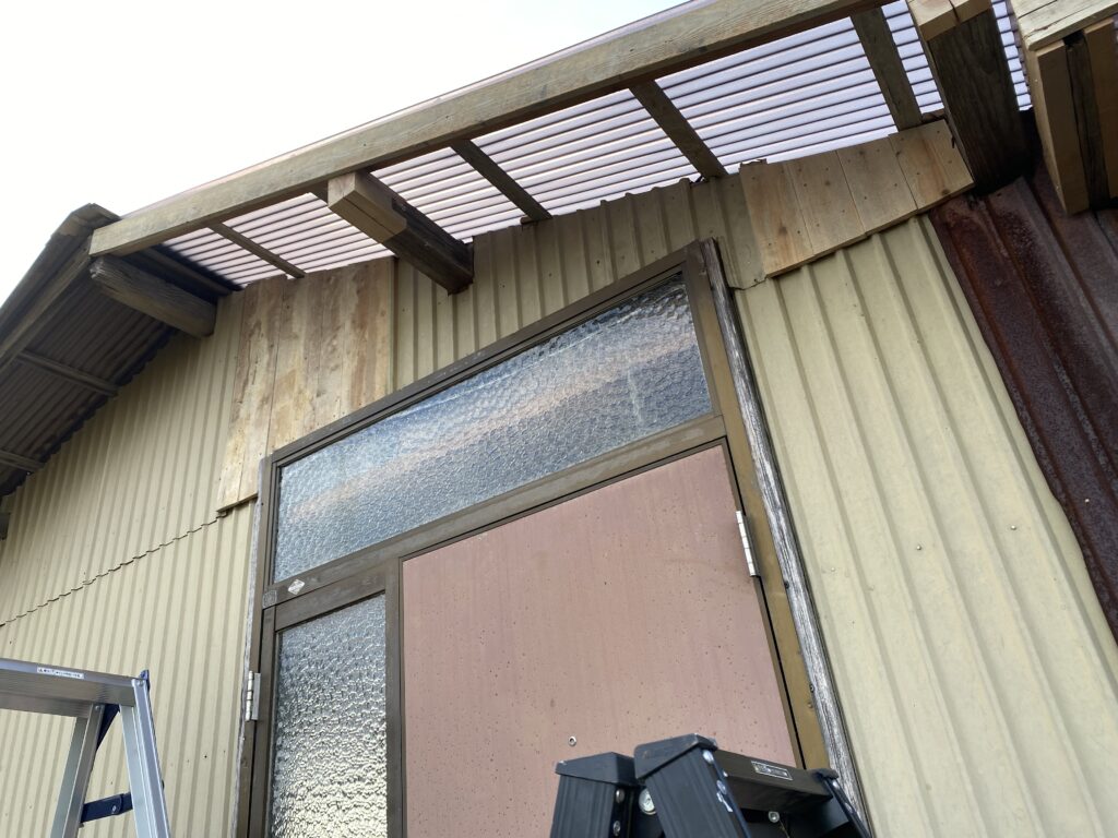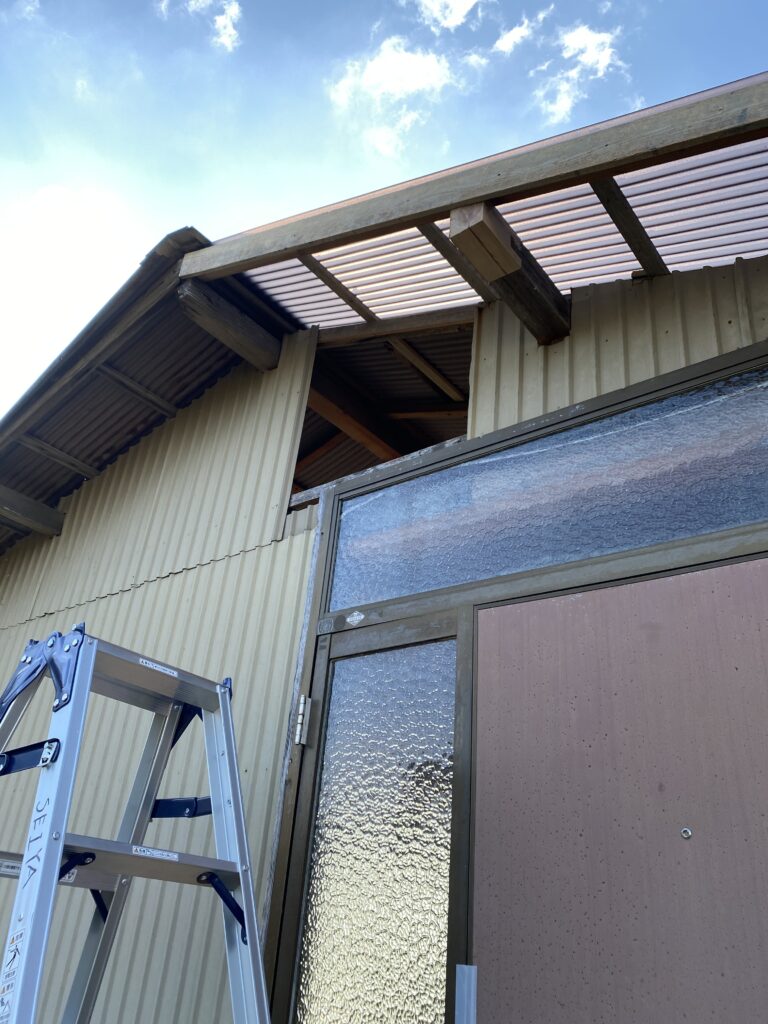 ポリカ製の波板をその上に貼り付け屋根の補修は完了です