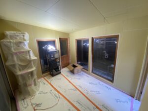仕上げはお客様の方で壁を漆喰で塗り、ドアやドア枠などを塗装で仕上げるという話なのでここまでです